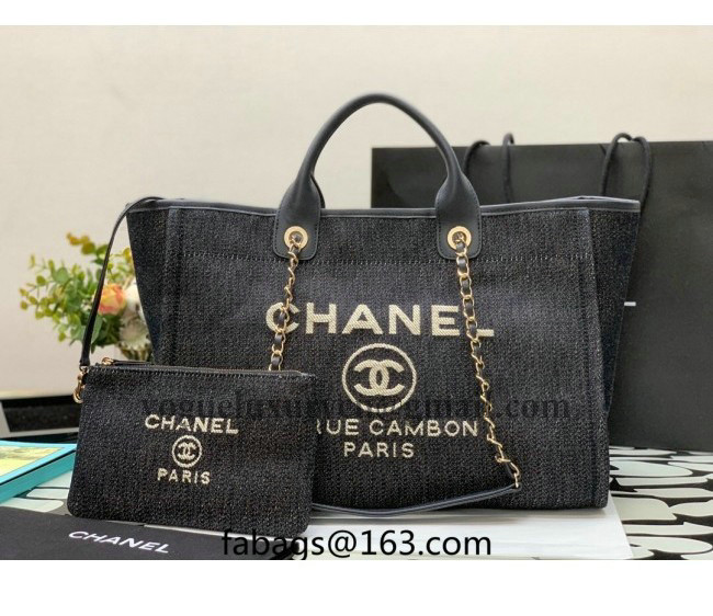 / Chanel Denim Large Shopping Bag A93786 Dark Blue 2022