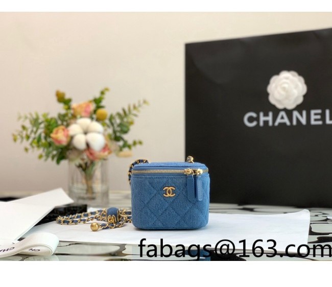 / Chanel Denim Small Vanity with Chain and Ball AP1447 Dark Blue 2022