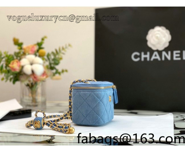 / Chanel Denim Small Vanity with Chain and Ball AP1447 Light Blue 2022