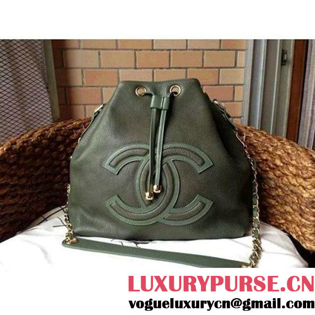 Chanel Drawstring Bucket Bag With A Big CC Signature in Green (1a086-060625 )
