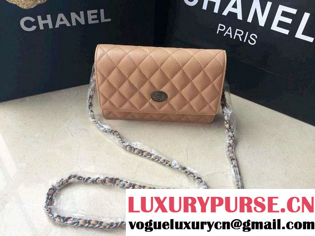 Chanel Embellished Metal Plate Wallet On Chain(WOC) Bag in Beige Pre Fall 2014