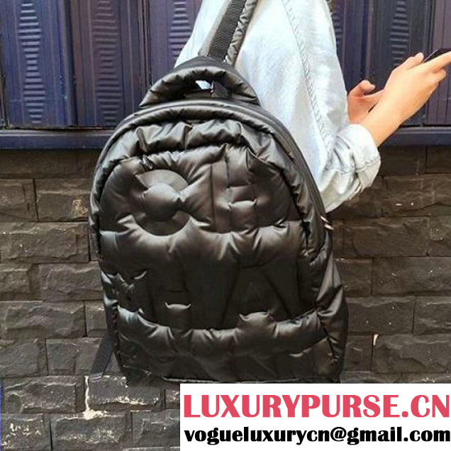 Chanel Embossed Nylon Doudoune Small Backpack Bag A91933 Black 2017 (2A143-7101401 )