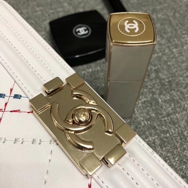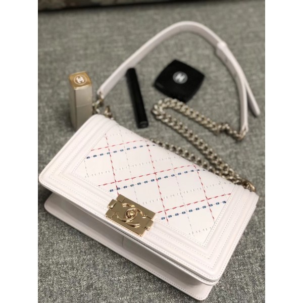/ Chanel Embroidered Boy Chanel Medium Flap Bag White 2019