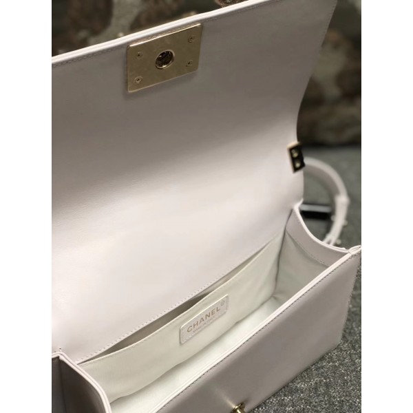 Chanel Shine Hardware Calfskin Boy Chevron Flap Medium Bag Off White 2016