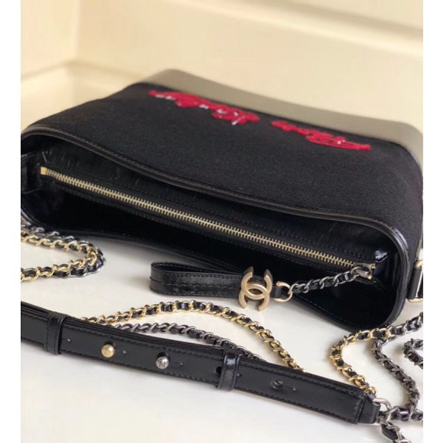 / Chanel Embroidered Wool Gabrielle Small/Medium Hobo Bag A91810/A93824 Black 2018