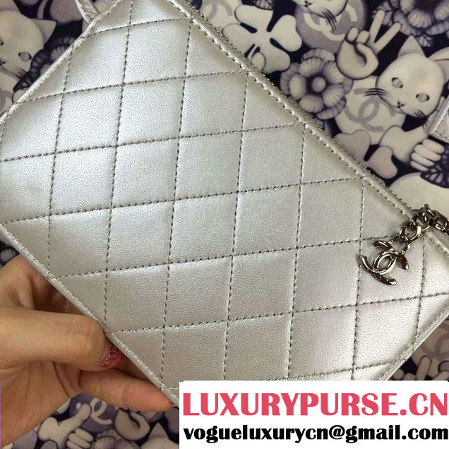 Chanel Emoticon Printed Fabric Shopping Large Shopping Bag A69926 Silver 2016