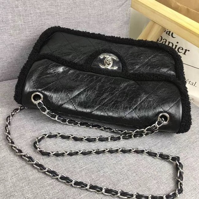 Chanel Flap Bag Shearling Lambskin & silver-Tone Metal 3378 black