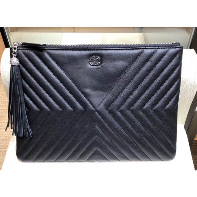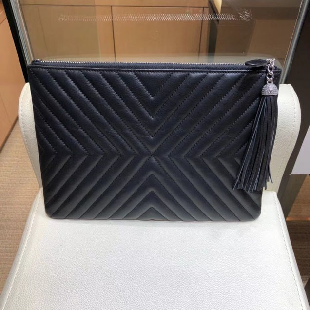 Chanel Fringe Calfskin Pouch Clutch Bag A84469 Black 2018