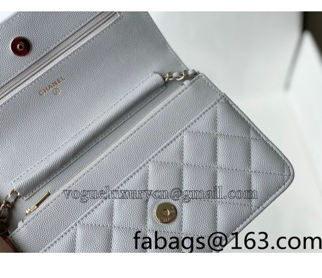 / Chanel Grained Calfskin Classic Wallet on Chain WOC AP0250 Light Gray 2022