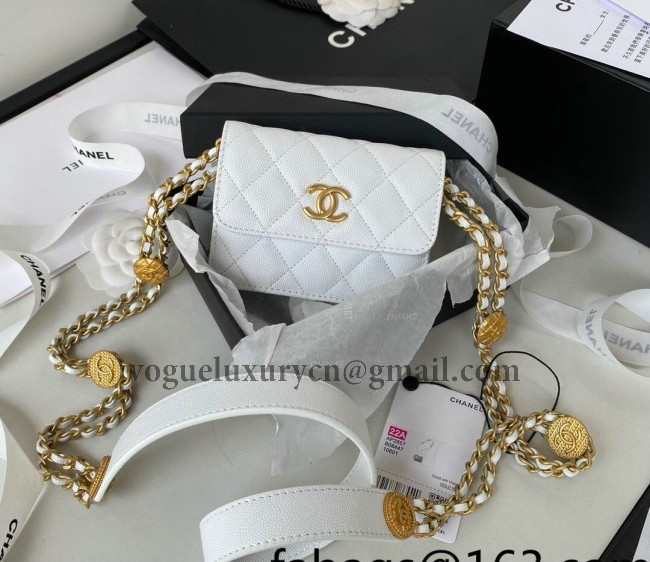 / Chanel Grained Calfskin Clutch with Coin Chain AP2857 White 2022
