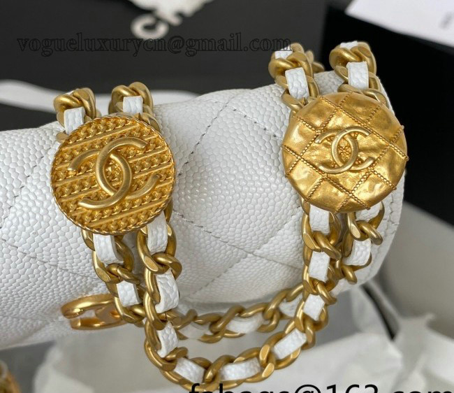 Chanel Grained Calfskin Small Flap Bag with Metal Coin AS3369 White 2022