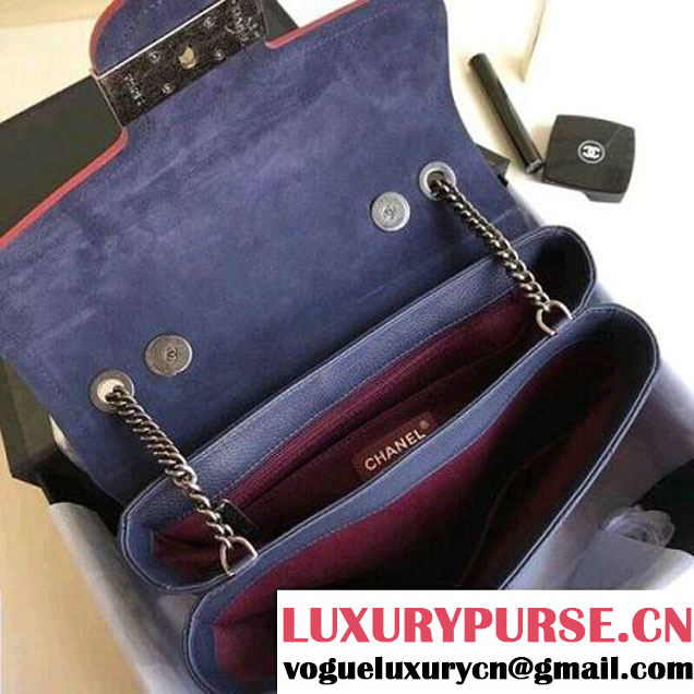 Chanel Small Python, Calfskin & Ruthenium Metal Bronze Flap Bag Blue F/W 2016 (YUN-6090920 )
