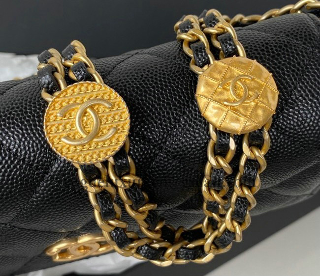 / Chanel Grained Calfskin Mini Flap bag with Coin Chain AP2860 Black 2022