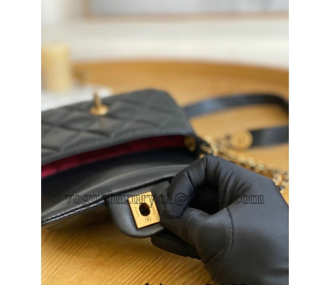 Chanel Lambskin Mini Flap Bag with Top Handle and Charm AS2431 Black 2022