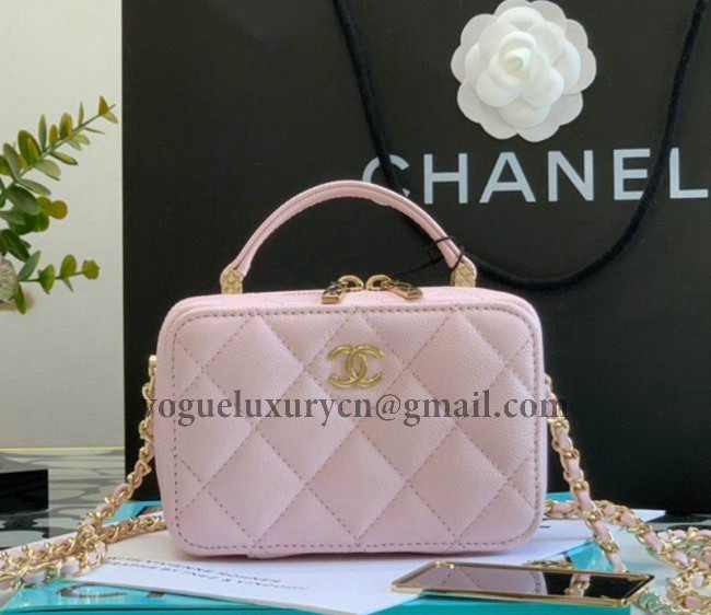 / Chanel Grained Calfskin Mini Vanity Case Bag with Top Handle AP2634 Pink 2022