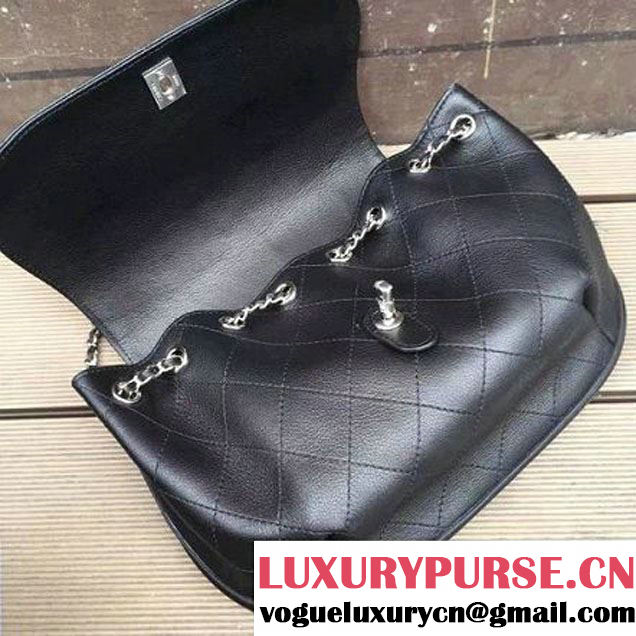 Chanel A93279 Large Lambskin Flap Bag With Handle Black 2016 (AV-7020803 )