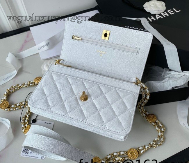 Chanel Grained Calfskin Wallet on Coin Chain WOC A92840 White 2022