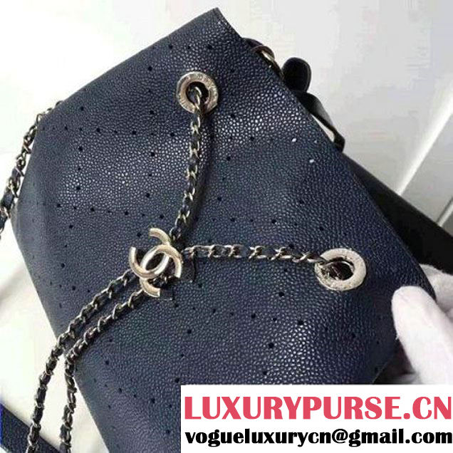 Chanel Grained Holes Calfskin Drawstring Bag A93722 Deep Blue 2017 (1A145-7051822 )