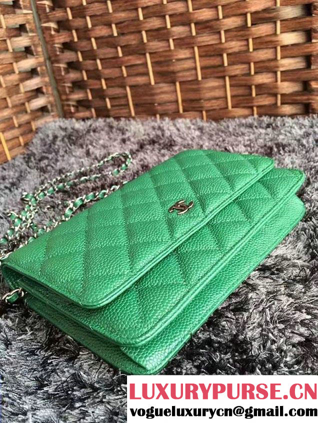 Chanel Quilted/Light Gold Metal Lambskin Wallet On Chain WOC Bag A84021 Green 2016