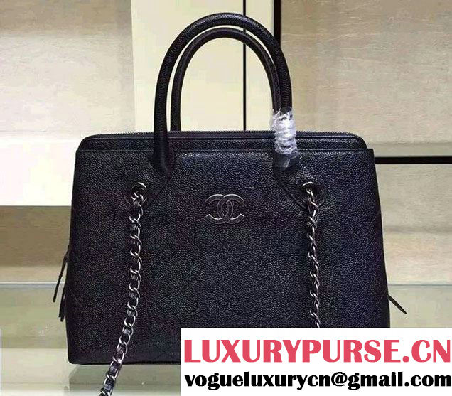 Chanel Lambskin Shopping Tote Bag Black Embellished A Plate Fall Winter 2015