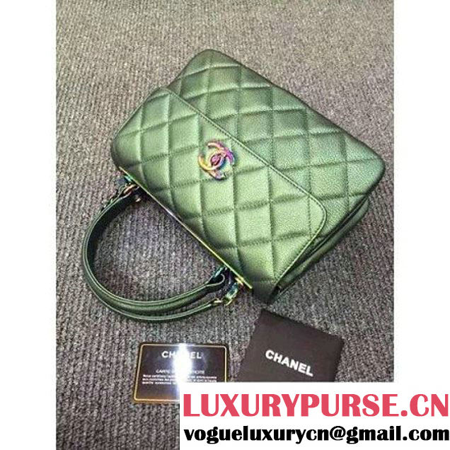 Chanel Green Calfskin Flap Bag Embellished With Chain Metallic Plate and Iridescent Hardware 2016 (DD-6011338 )