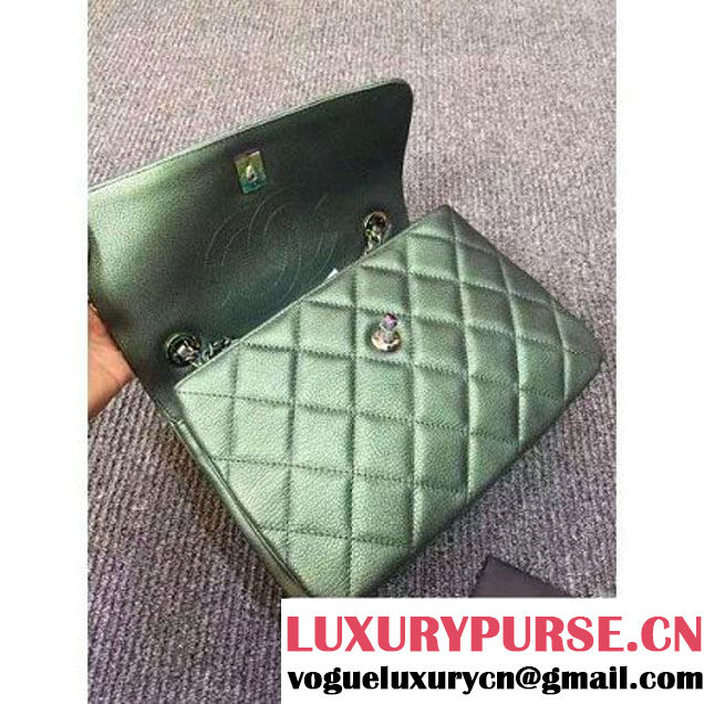 / Chanel Green Calfskin Flap Bag Embellished With Chain Metallic Plate and Iridescent Hardware 2016 (DD-6011338 )