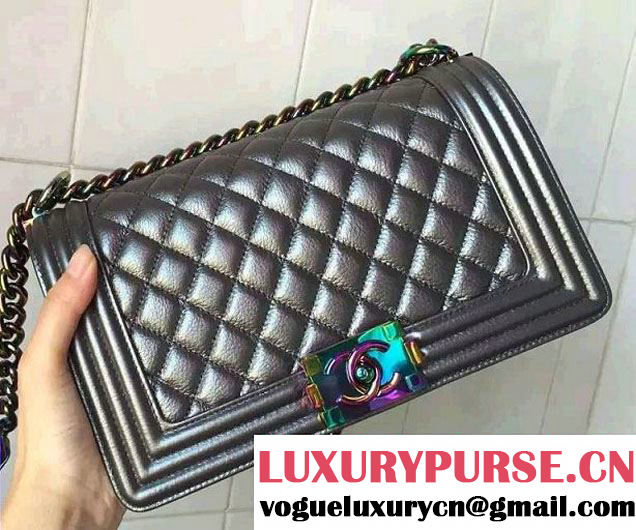 / Chanel Iridescent Boy Flap Bag Silver Gray with Rainbow Hardware 2015/2016