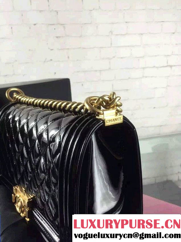 Chanel Iridescent Patent Leather Boy Flap Shoulder Bag Black with Gold Hardware 2015