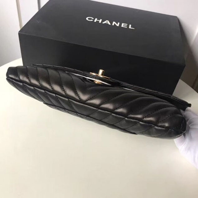Chanel Lambskin Chevron Classic Clutch Bag A57650 Black 2018