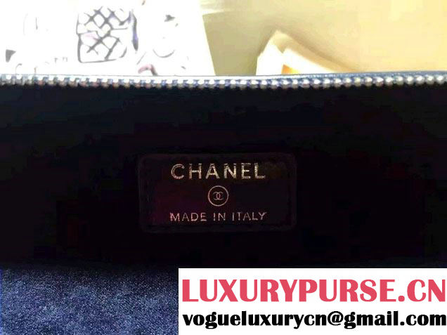 Chanel Lambskin Cosmetic Pouch Long Bag Navy Blue 2016