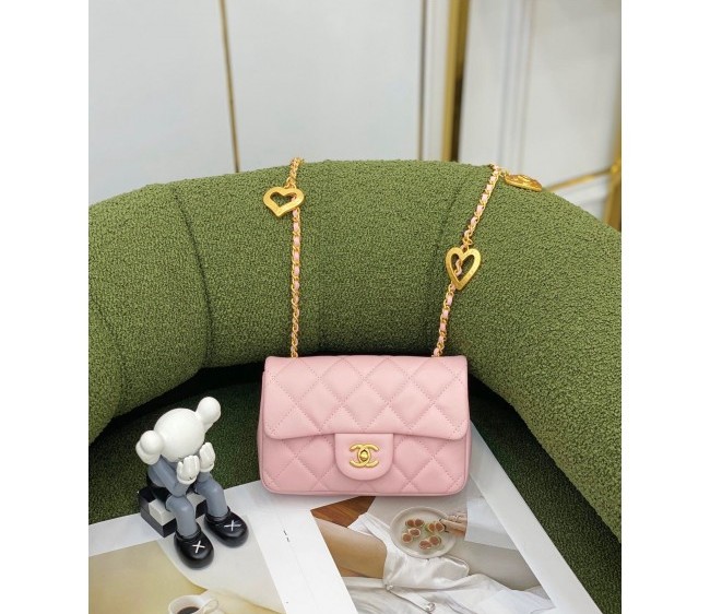 / Chanel Lambskin Mini Flap Bag with Heart Chain AS3456 Pink 2022