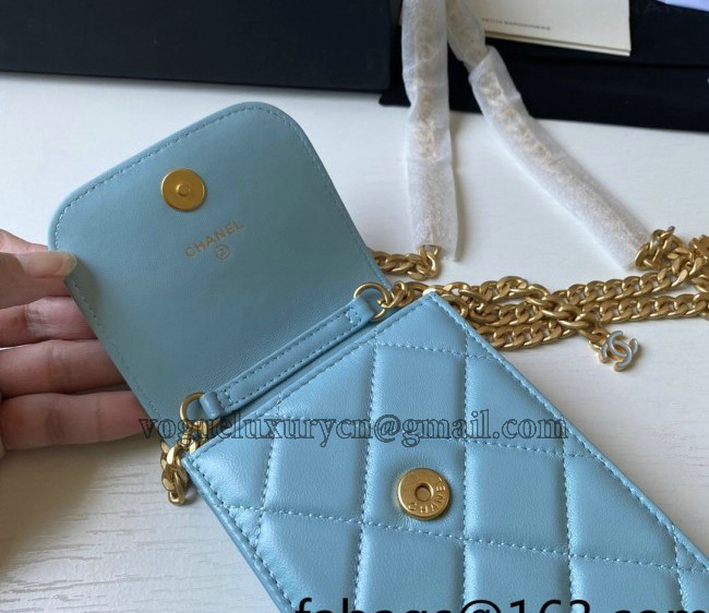Chanel Lambskin Phone Holder with Chain AP2636 Blue 2022
