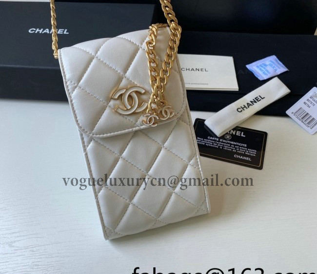 / Chanel Lambskin Phone Holder with Chain AP2636 White 2022