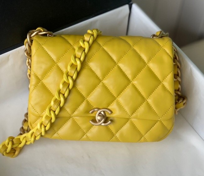 / Chanel Lambskin Small Flap Bag with Lacquered Metal Chain AS3206 Yellow 2022