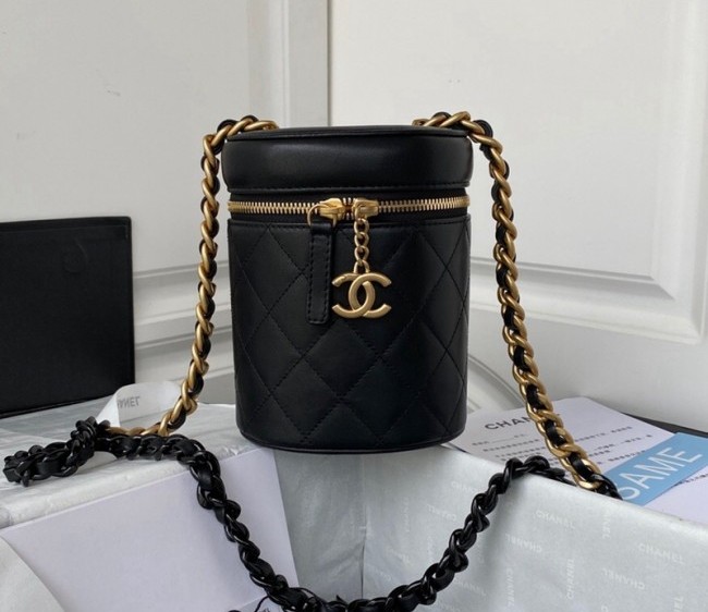 / Chanel Lambskin Small Vanity Case bag with Patchwork Chain AS3210 Black 2022