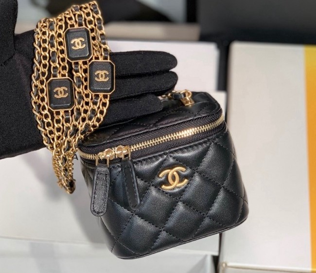 / Chanel Lambskin Small Vanity Case with CC Patch Chain AP2931 Black 2022