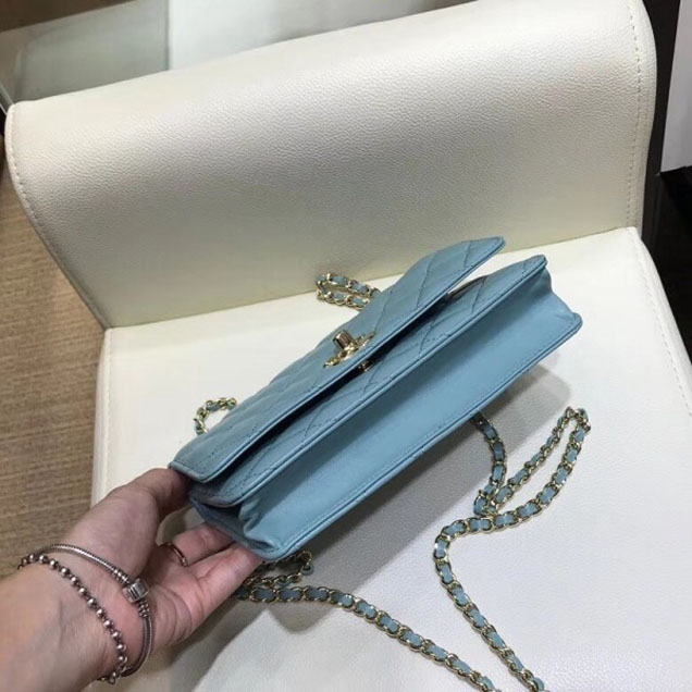 / Chanel Lambskin Trendy CC Wallet On Chain WOC Bag A80982 Light Green 2018