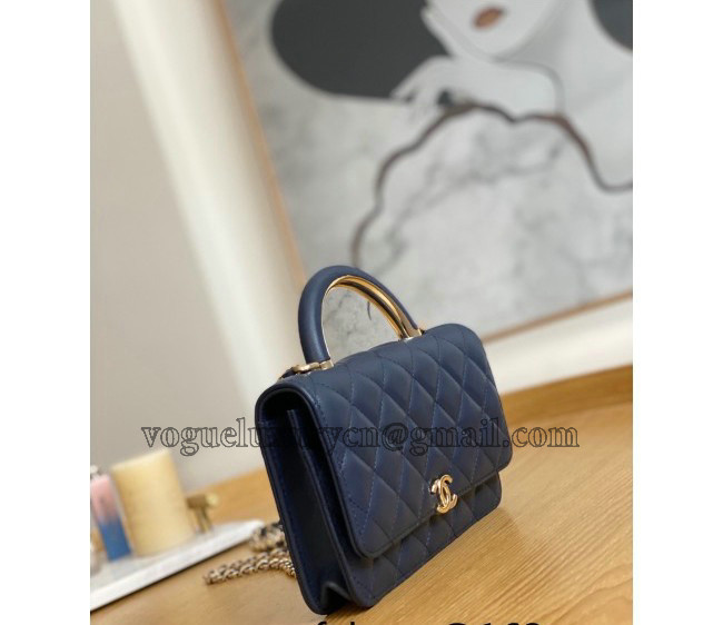 Chanel Lambskin Wallet on Chain WOC and Metal Top Handle AP2844 Navy Blue 2022