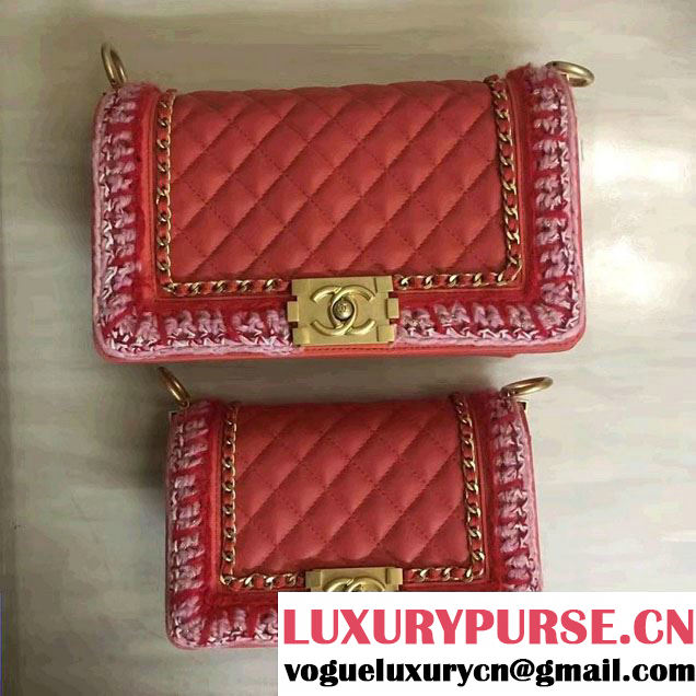 Chanel Lambskin/Grosgrain/Braid Boy Jacket Bag Coral Pink 2016Small Size:20*12*7cmMedium Size:25cm