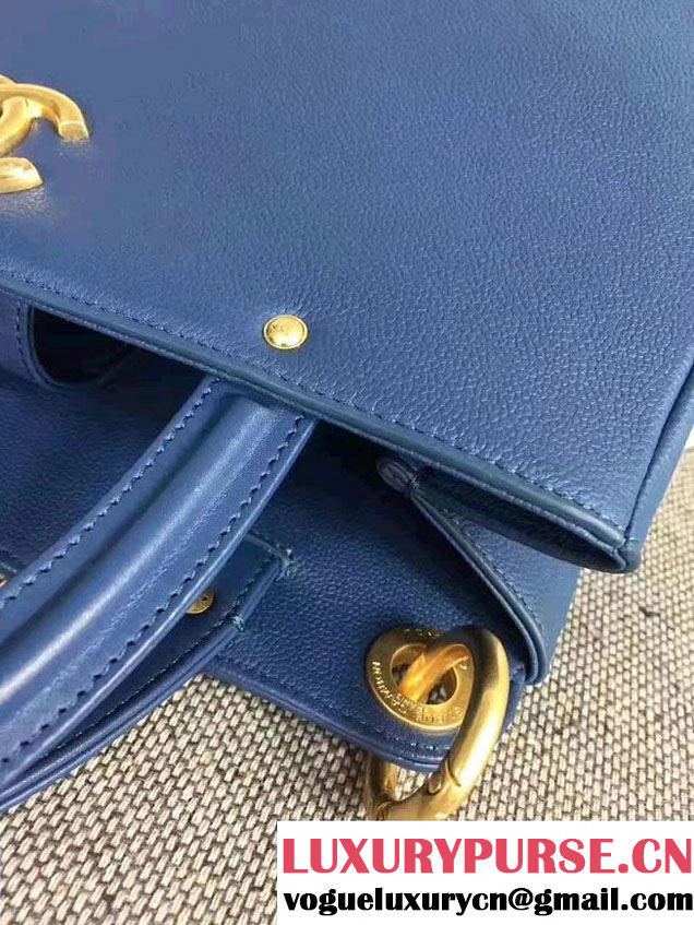 Chanel Around The Corner Calfskin Large Shopping Bag A93518 Blue Green 2016