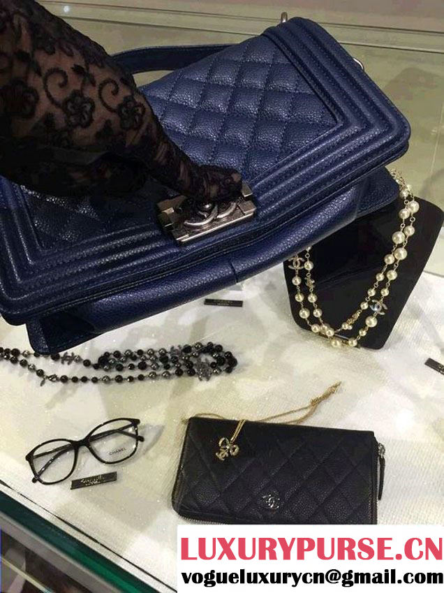 Chanel Medium Boy Flap Shoulder Bag A67086 in Caviar Leather Royal Blue with Silver Hardware