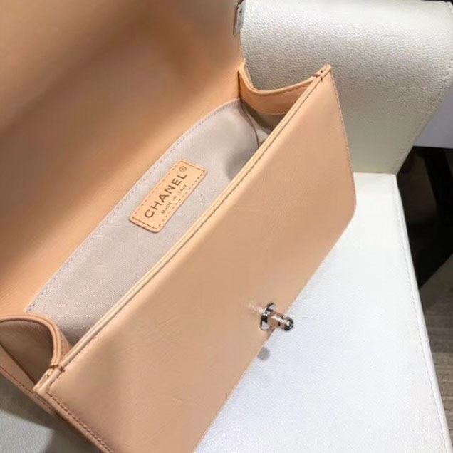 / Chanel Medium Metallic Crumpled Waxy Leather Resin Boy Flap Shoulder Bag Apricot