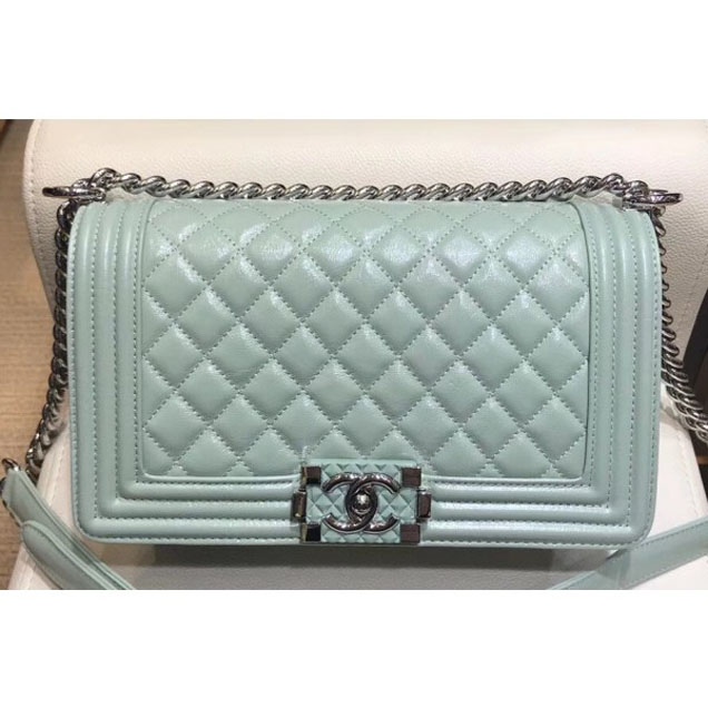 Chanel Medium Metallic Crumpled Waxy Leather Resin Boy Flap Shoulder Bag Light Green
