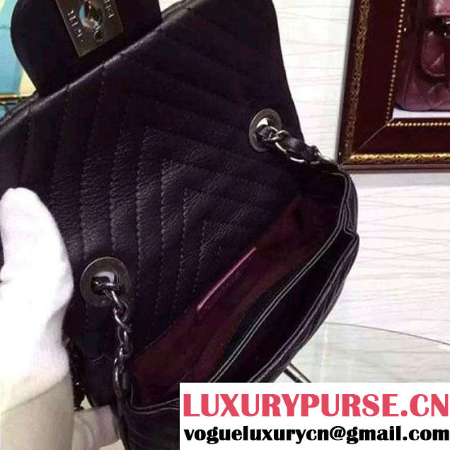 Chanel Lambskin Flap Bag Embellished With Chevron Quilting Black Cruise 2016 (2A143-122603 )