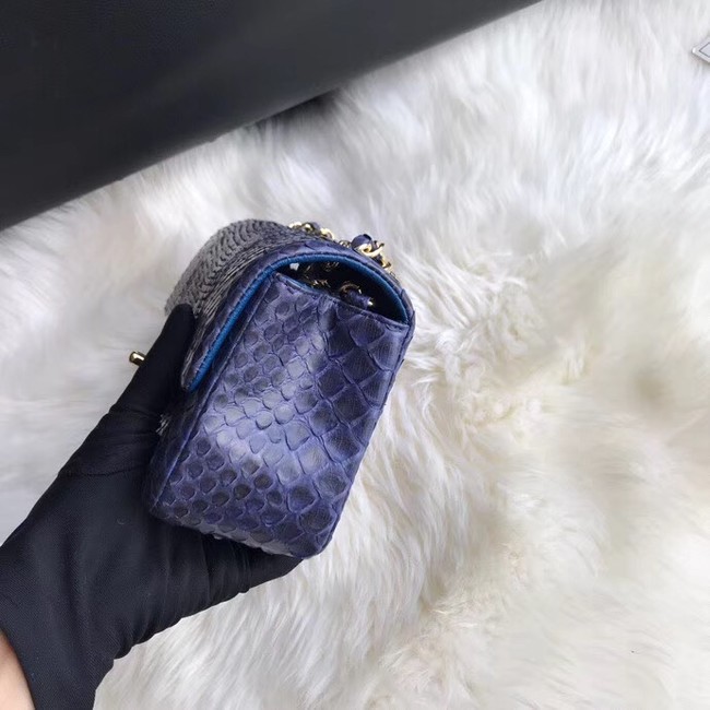 Chanel Mini Flap Bag Python & Gold-Tone Metal A69900 dark blue