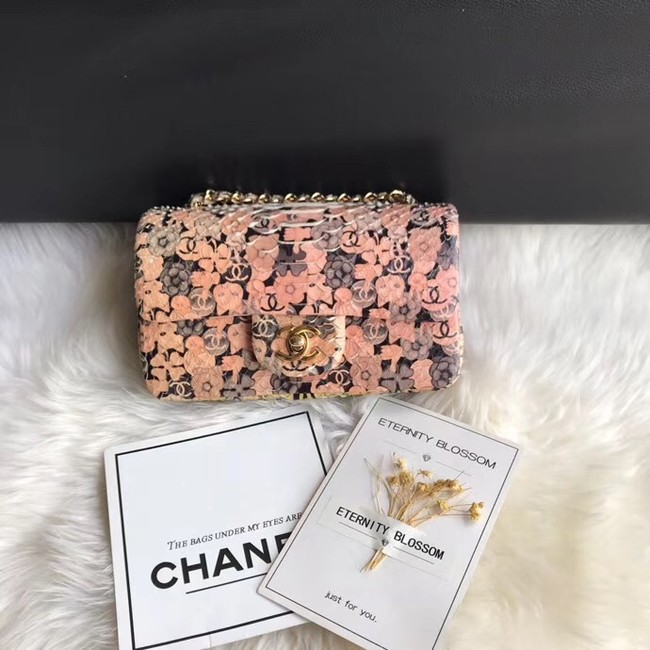 Chanel Mini Flap Bag Python & Gold-Tone Metal B69900 pink