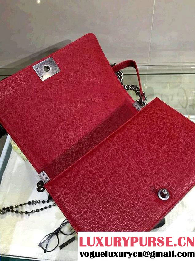 Chanel New Medium Quilted Boy Flap Shoulder Bag Red in Caviar Leather with Silver Hardware