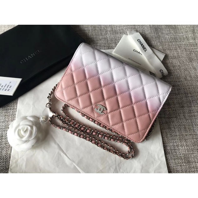 / Chanel Patent Calfskin Glass Strass Wallet On Chain WOC Bag Pink/White 2018