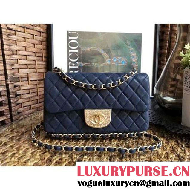 Chanel Pearl Calfskin & Light Gold Metal Flap Bag Blue 2016 (1A086-6092609 )