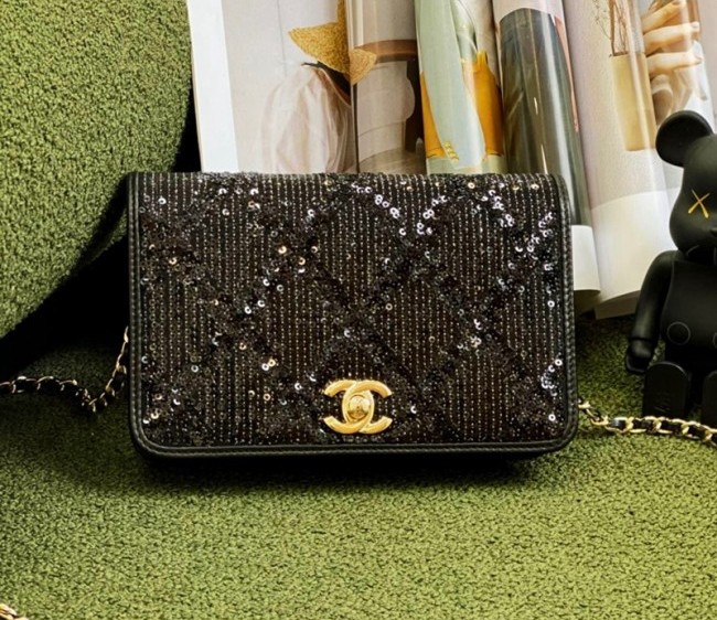 Chanel Lambskin Clutch with Chain and Metal Top Handle Black 2022